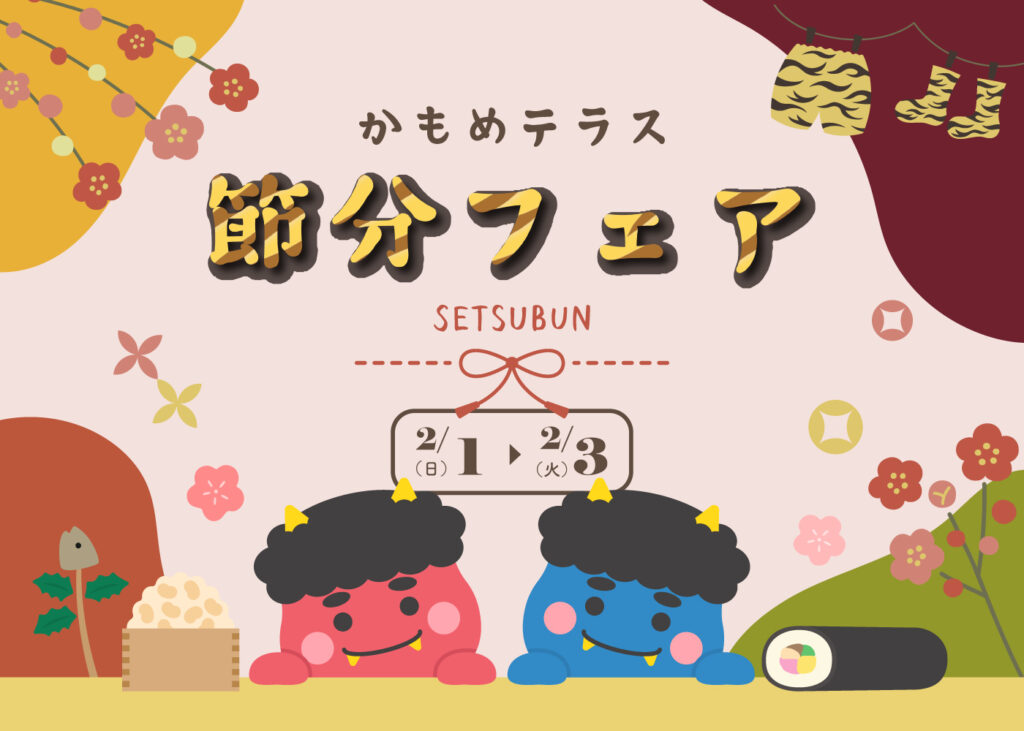 2月3日は節分ですね👹✨ かもめテラスでは、2月1日~2月3日まで、節分限定のお菓子をご用意いたしました👹✨節分のひとときを、ちょっぴり特別で美味しく楽しんでみませんか? 今年は、豆の旨みと塩味があとを引く『豆大福』と、思わず笑顔になる“食べる鬼”のスイーツ『おにっころん』が登場です。香ばし